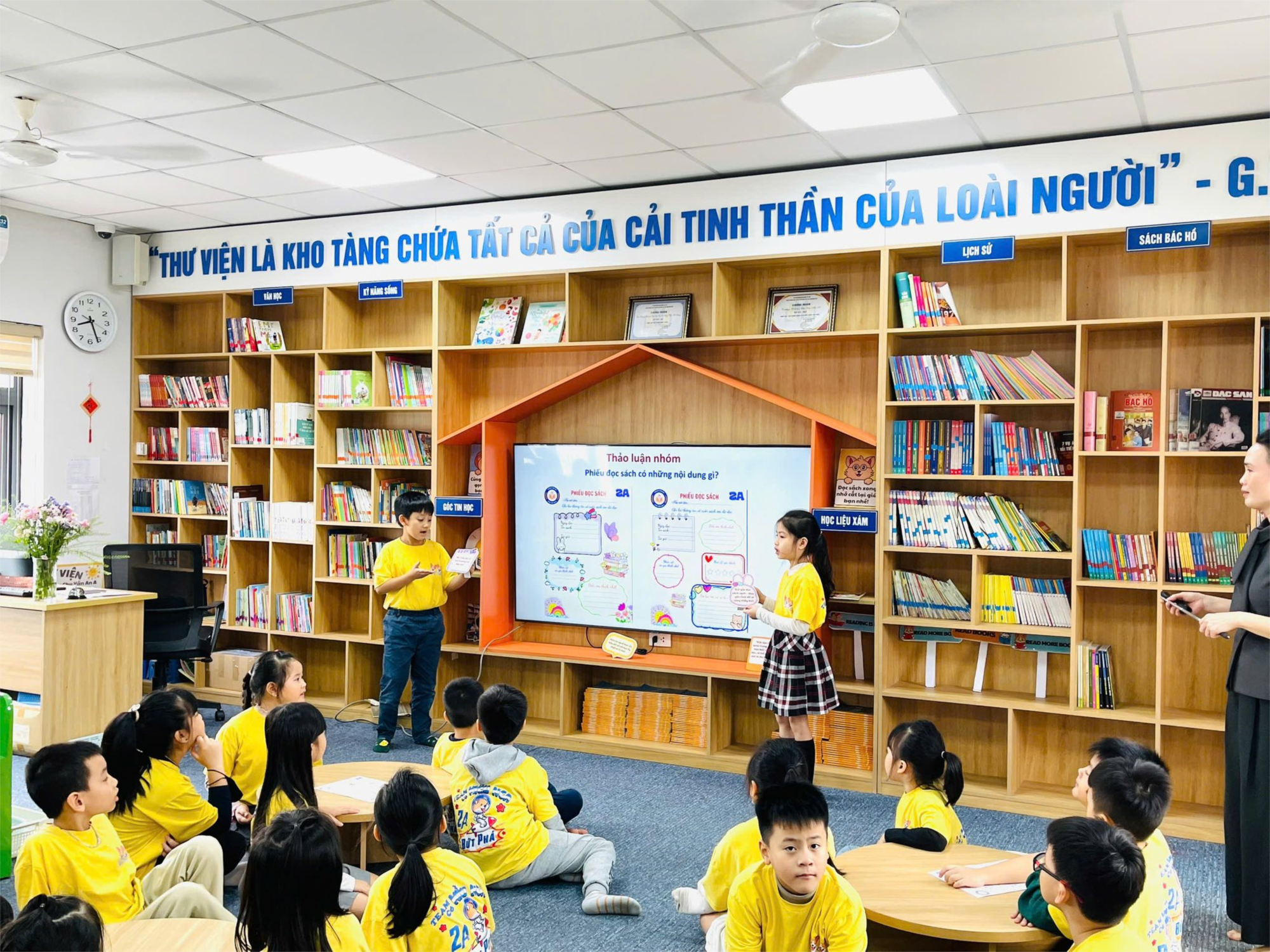 Trong phần chia sẻ, các con tự tin giới thiệu với cô và các bạn về cuốn sách yêu thích, kể lại những chi tiết hay và những điều mới mẻ mình vừa học được. Không chỉ đọc tại trường, nhiều bạn còn duy trì thói quen đọc ở nhà – xem việc đọc sách như một cách thư giãn nhẹ nhàng, bổ ích sau mỗi ngày học tập.