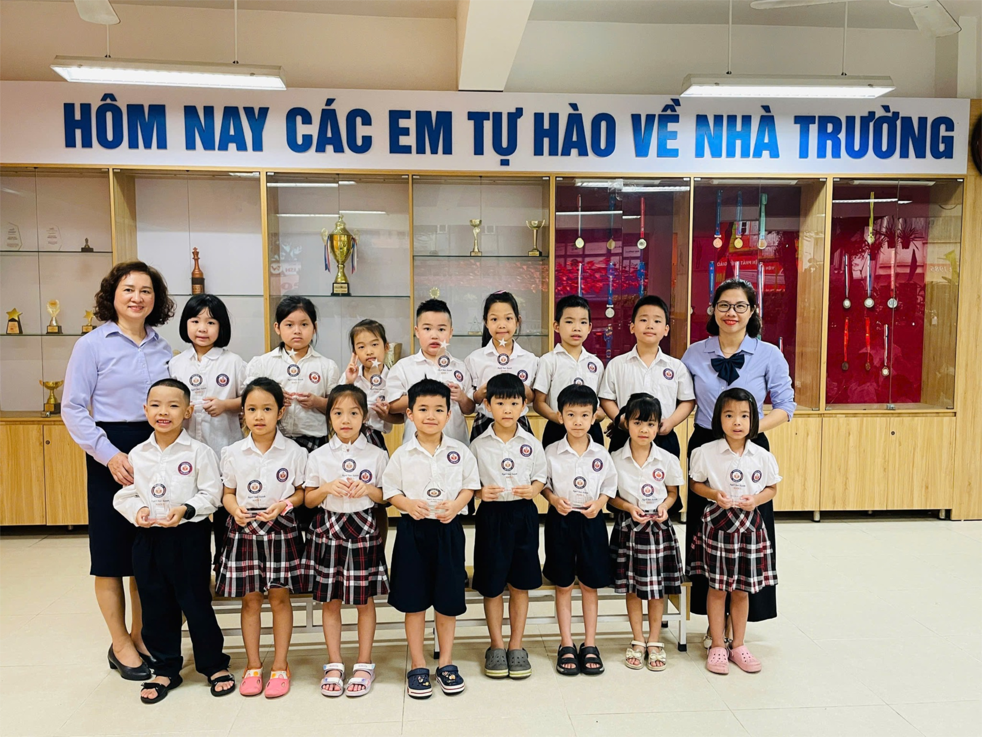 biểu tượng riêng dành cho 5 khối, những bạn đạt thành tích tiêu biểu, nổi bật của tháng sẽ vinh dự được nhận phần thưởng. Còn điều gì tuyệt vời hơn khi các bạn nỗ lực cố gắng để sưu tầm trọn bộ 5 biểu tượng cho 5 năm học dưới mái Trường Tiểu học Chu Văn An A.