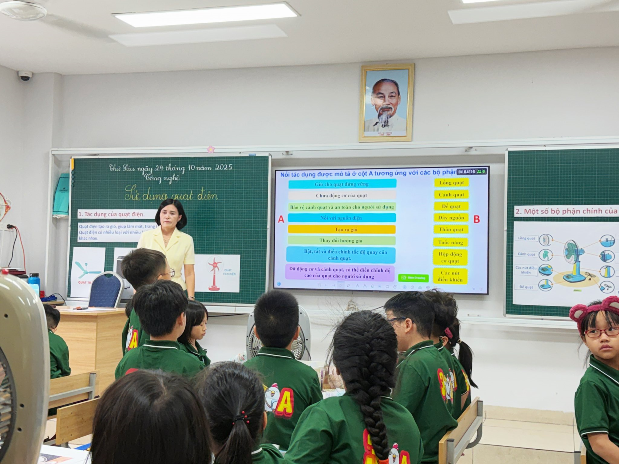 nay, các bạn nhỏ lớp 3A đã có một tiết học thật đặc biệt với bài “Sử dụng quạt điện” – bài học không chỉ mang đến kiến thức về thiết bị điện quen thuộc trong gia đình, mà còn giúp học sinh hiểu cách sử dụng quạt điện đúng cách, an toàn và tiết kiệm năng lượng