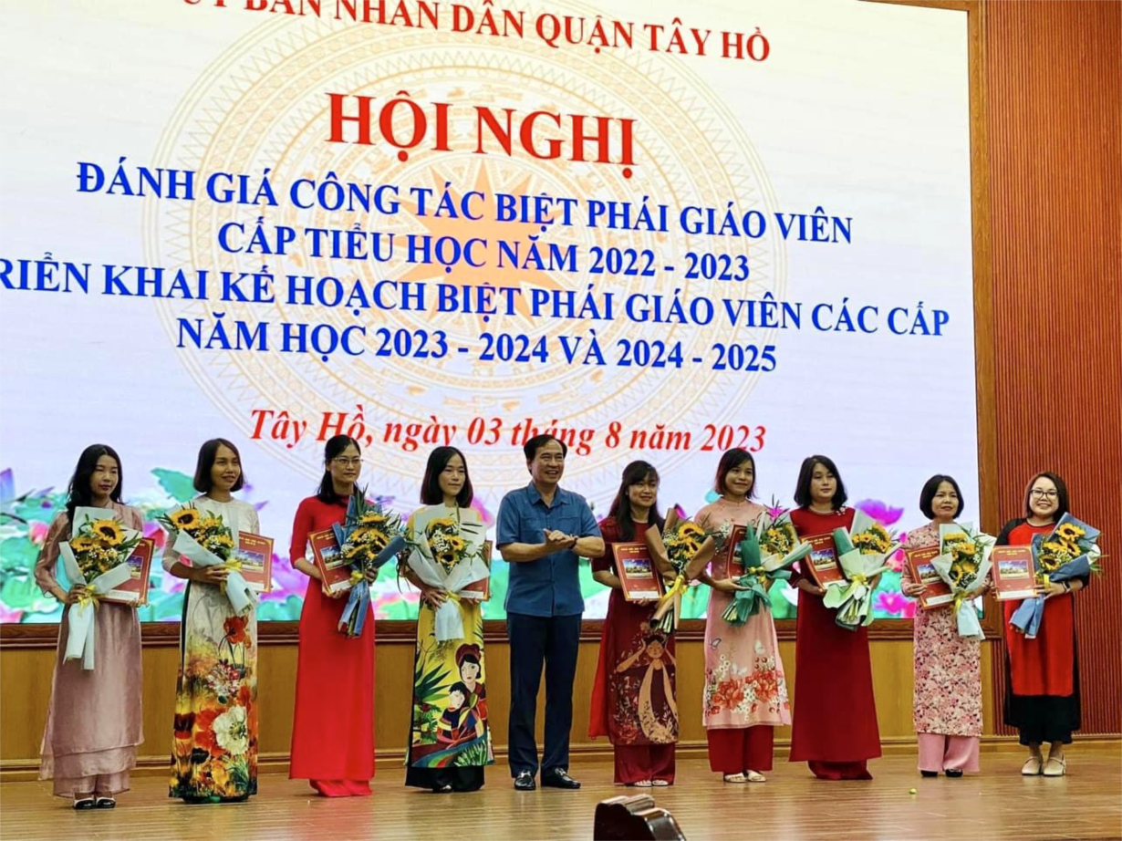 Xin chúc cô giáo Nguyễn Thị Ngọc Thu và cô giáo Mai Thị Hải Anh sẽ hoàn thành tốt nhiệm vụ biệt phái trong năm học 2023-2024 đúng như lời căn dặn của Bí thư Quận ủy Tây Hồ Lê Thị Thu Hằng “Mỗi thầy giáo, cô giáo đi biệt phái cần phát huy hết tinh thần, trách nhiệm, khả năng, năng lực công tác ở môi trường làm việc mới, góp phần cùng cả hệ thống giáo dục quận nâng cao chất lượng giáo dục đào tạo trên địa bàn trong những năm học tới”.