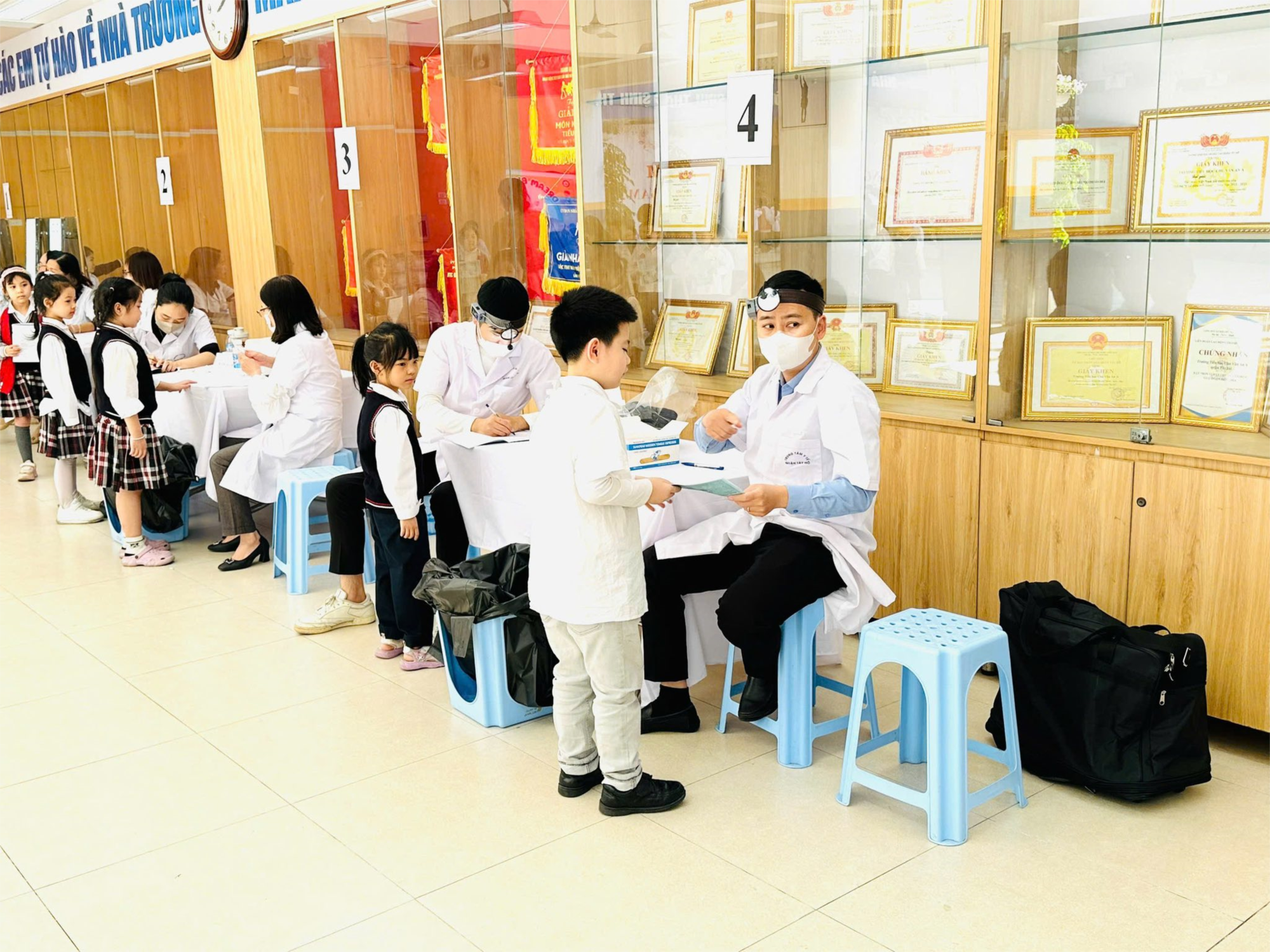 Hoạt động khám sức khỏe giúp việc theo dõi thể trạng của học sinh được đầy đủ và sát sao hơn để các con luôn có 1 nền tảng sức khoẻ tốt đảm bảo cho hoạt động học tập và vui chơi tại trường.